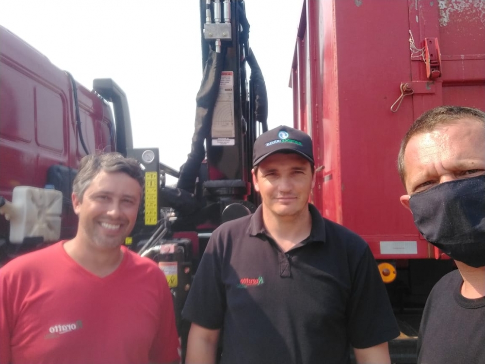 CR guindastes/Argos de Crazinho realizou a entrega do guindaste AGI 10.0/31 ao cliente Irmãos Rorrato da cidade de Santo Ângelo/RS.