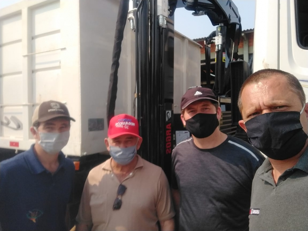 A representante Cr guindastes/Argos realizou a entrega do guindaste AGI 7.6 ao cliente Volmir L Coradi da cidade de Marau/RS.