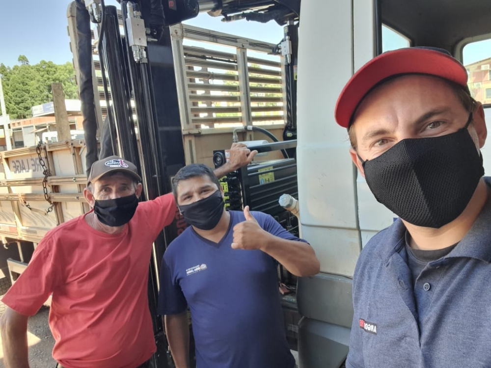 A Cr guindastes /ARGOS de Carazinh-Rs realizou a entrega do guindaste AGI 7.6/30 ao cliente M M Juchem Com. Materiais de Construções Ltda da região de São Luiz Gonzaga/Rs.